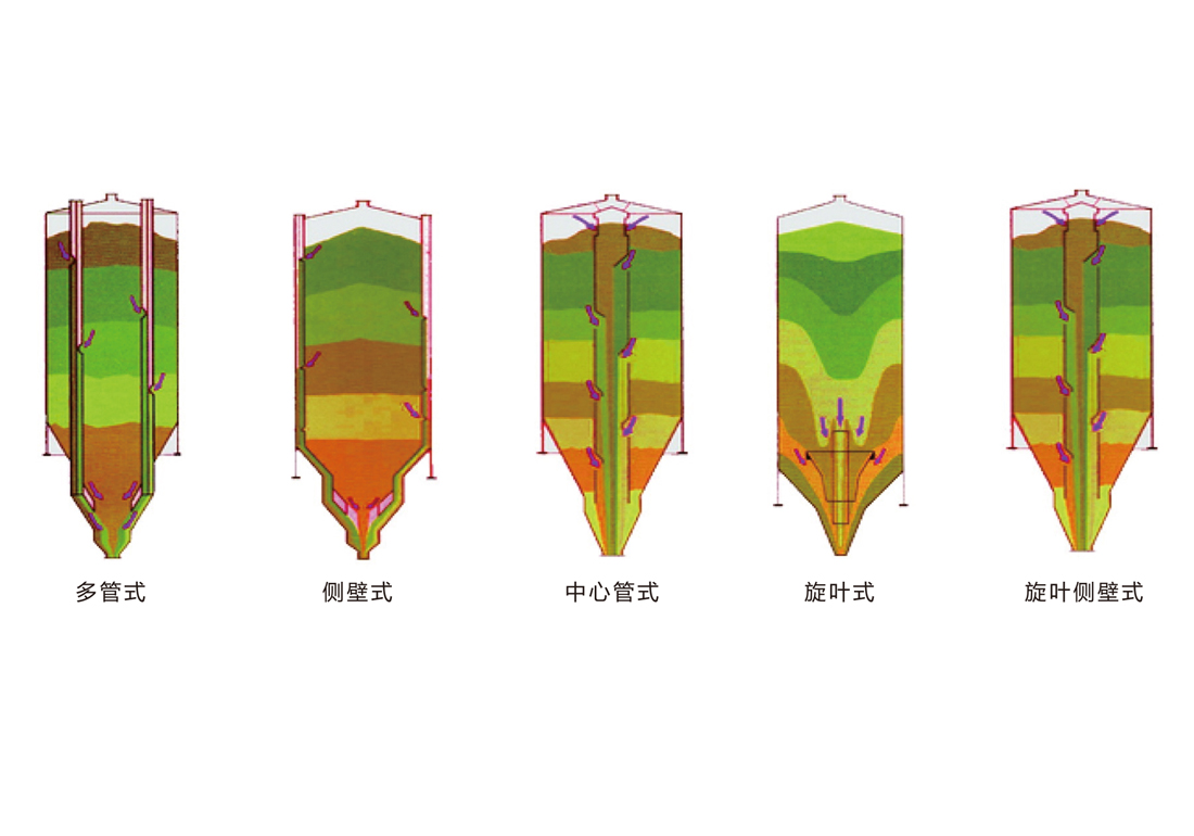 重力式摻混均化料倉原理為通過科學設計,利用多股氣流將物料從倉內不同高度、不同方位有選擇的同時進入倉底,從而實現摻混均化的目的,大大改善粉粒料不同批次及品種物性(如熔融指數、粒度、色比度、亮度等)的一致性。